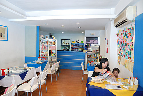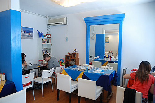 餐廳門口~ 以藍白色系為主...小庭院有一些裝飾與擺設~ 有溫馨的感覺...還不錯~