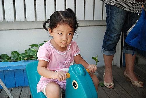 門口還有一個給小孩子騎的小馬馬, 小公主看到了怎麼能放過呢..~