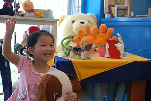 小公主抱起其中一隻狗狗...扮起了鬼臉...讓我拍照~~