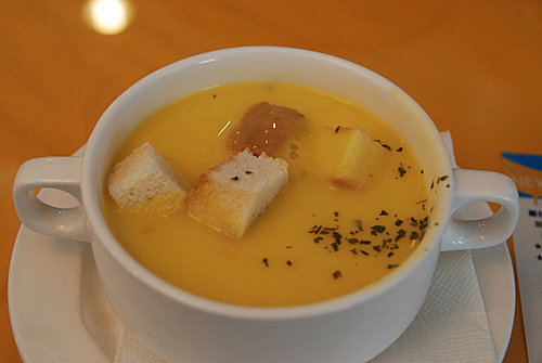 南瓜濃湯~ 個人覺得很好喝~ 如果加上剛剛的麵包就更好吃了~ 濃湯也可以續點哦~