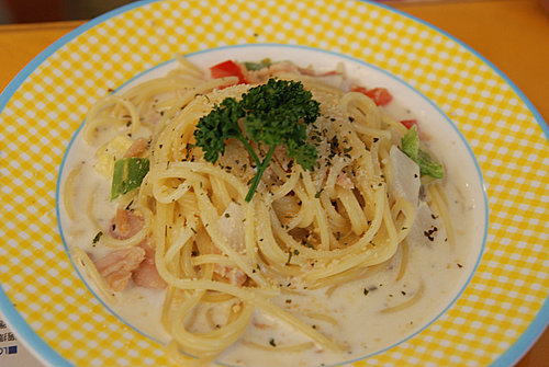 小公主的兒童餐~ 這一間的兒童餐有兩種選擇, 名字取的很好玩: 1.賣火柴女孩煙燻白醬雞肉義大利麵 2.小紅帽外婆家的蛤蠣肉醬義大利麵~ 我們家小公主是點1...還不錯吃~ 小公主吃的不少耶~