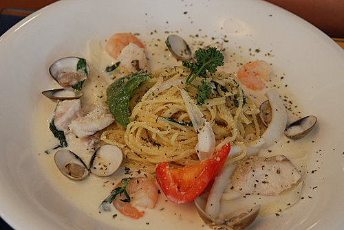 我點的九層塔香蛤蠣海鮮義大利麵...(白醬)~
