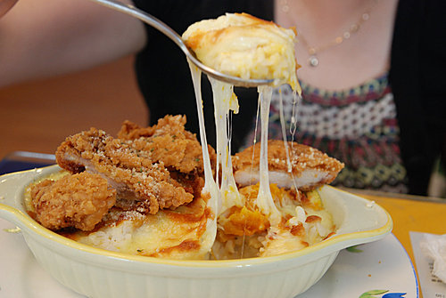 吃焗烤,當然要拍一張它"牽絲"的樣子阿...這樣一看就知道這道菜好不好吃,有沒有成功啦~ 這一家的醬選擇性很多, 我和老婆因為都蠻愛吃奶油口味的, 所以一個點白醬, 一個點南瓜白醬...後來我們的結論都一樣, 就是南瓜白醬多一個南瓜的味道...比較好吃喔~其他口味的醬, 就下次再去試試囉~