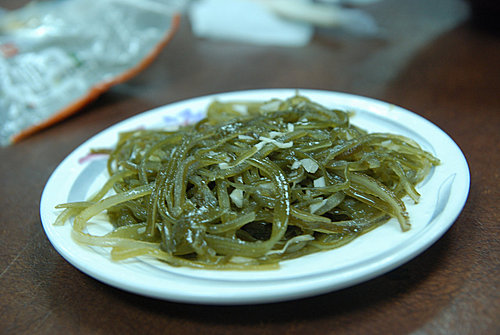 小菜: 醃海帶~ 冰冰涼涼, 酸酸甜甜的...對於這種炎熱的天氣, 很開胃哦~