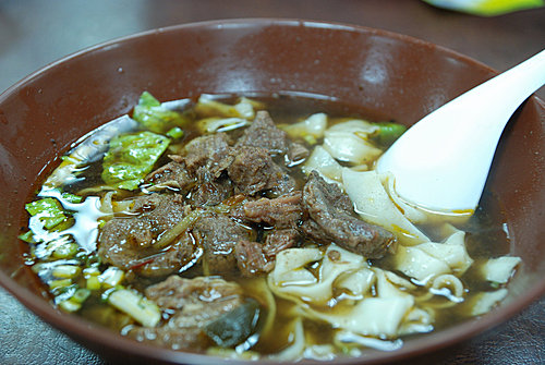 老婆點的招牌牛肉麵~ 是手工寬麵哦..加上牛肉湯, 份量看起來就很不錯囉~ 嗯~ 牛肉就不用評論了...就是好吃...湯頭也很夠味, 口味雖重, 但是卻不很油也不會很鹹...老婆吃的贊不絕口~ 老婆說比我們家附近的老x子牛肉麵還好吃耶~ XD~