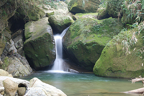 這是在停車處要往上前往德興瀑布入口處的一個小瀑布, 我覺得瀑布搭配青苔石頭蠻好看的, 所以就拍下來囉~