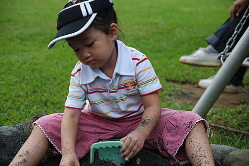 所以說到玩沙沙, 小公主怎麼可能會錯過呢? 瞧她玩的滿身都髒兮兮的囉~