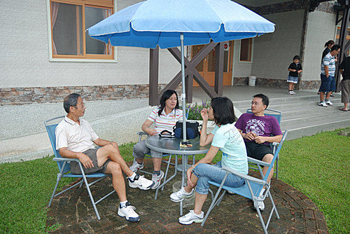 大夥坐在椅子上閒話家常, 很休閒~