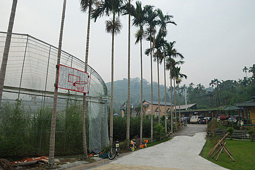 老闆還自己製作籃板籃框, 裝設在兩棵樹中間, 相當好玩, 當然, 我也有去小試身手一番啦~