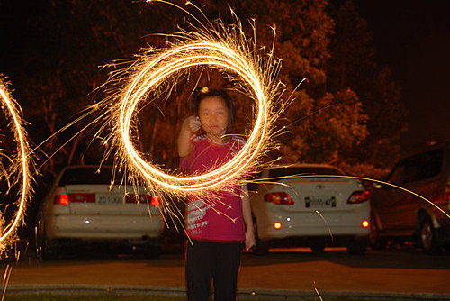 晚上外甥女在大草皮上玩仙女棒, 我就給她拍下這一張啦~