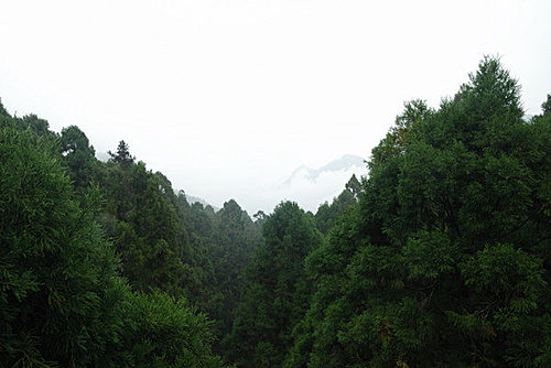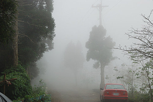 隔天吃完早餐, 就去大崙山觀光茶園, 本來想去拍拍美麗的茶園景致, 可惜起大霧了, 茶園就拍不成了~看這一張照片就知道了, 山在虛無飄緲間~