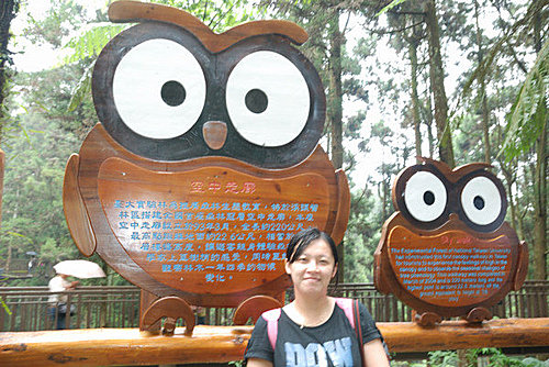 空中走廊入口處的介紹牌子, 貓頭鷹造型的喔~