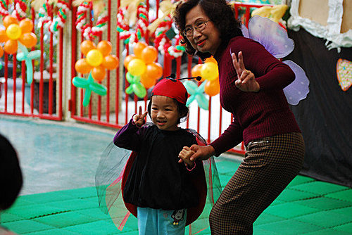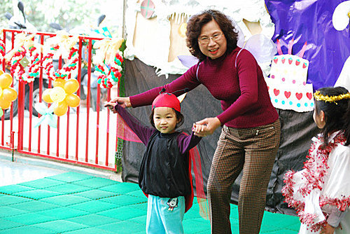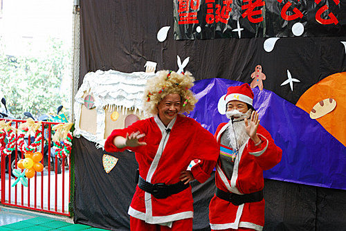 聖誕老公公and聖誕老婆婆~ 正在寓教於樂的灌輸小朋友環保的觀念~