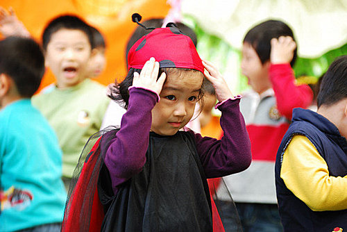 "我可愛的瓢蟲帽帽還在頭上嗎? 沒有掉下來吧?"...呵...驊寶貝超愛這一套瓢蟲裝的~