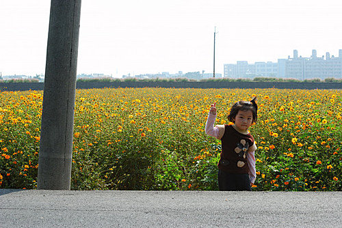 某個星期日早上, 開車載著妻小在新市一帶閒晃著, 經過省道台19線往善化方向的路邊, 發現一大片花海, 就決定下車拍拍照了, 常常開這條路往南科或善化, 卻不知道何時多了這一片美麗的花海, 可見平常的生活步調太快了, 沒能靜下心來好好發現與欣賞身邊的美景...