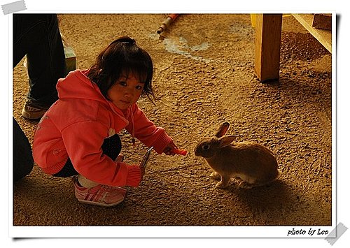 這裡當然也可以買飼料或草來讓小朋友餵餵動物囉~ 小山羊搶食中~ 還蠻兇的勒~