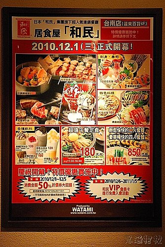 , 所以就和老婆帶著兩個寶貝, 大包小包不辭辛勞的跑去文化中心走走,晚上順便去吃餐廳囉~ 原本計畫要去吃大遠百4F的古拉爵義式餐廳, 因為驊寶貝喊著要吃義大利麵好久囉~ 沒想到... 阿娘喂, 五點半就到那邊現場"掛號", 想到已經要排到7:30啦!天ㄚ, 生意未免也太好了吧?於是只好轉往大遠百唯二餐廳的另一間"和民居食屋"...這名字還真奇怪, 我有聽過居酒屋, 倒是沒聽過居食屋啦~